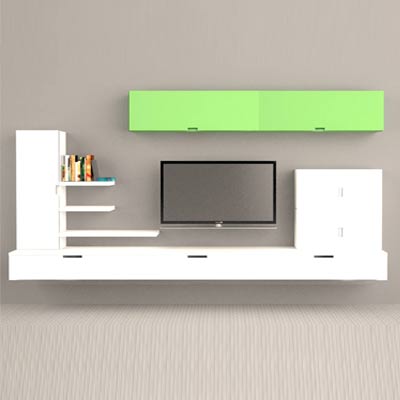 This TV Unit is simple and sophisticated in its style. We love the contrasting white and green which adds just the required 'oomph' to the space. Closed shelves to store all your things - you have the options of choosing units without shutters as well. All the shelves are wall mounted so that the floor is not forgotten while the space is being cleaned!